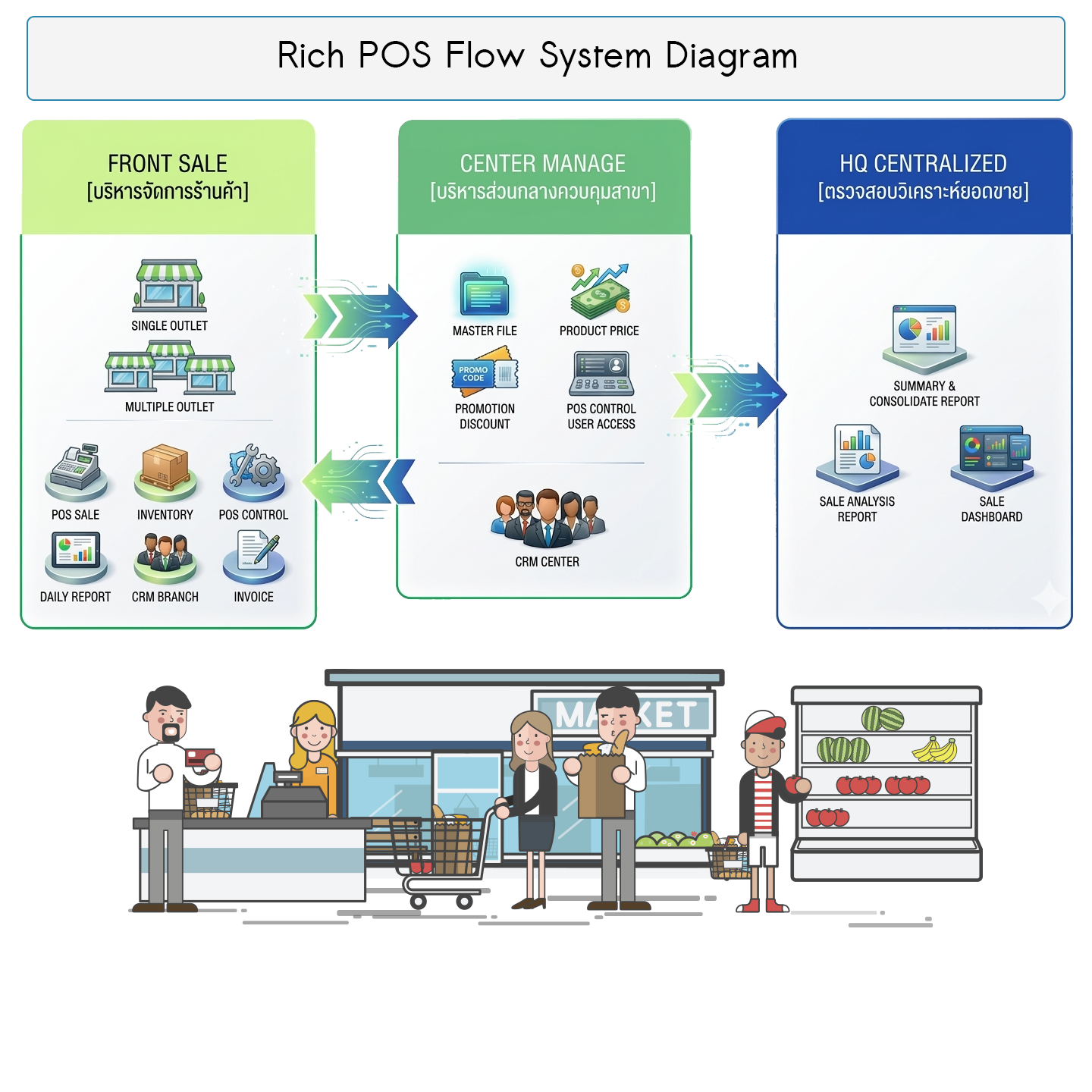 ระบบ Rich POS จะช่วยตอบโจทย์สำหรับผู้ประกอบการขาดเล็ก และ ขนาดใหญ่ ด้วยฟังก์ชั่นการทำงานที่ครอบคลุม
